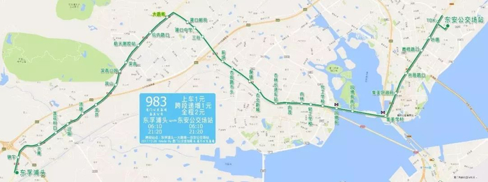(四)调整840路为983路(东安公交场站—东孚浦头),减停路段可由轨道交通1号线、127路、952路、994路等多条线路分流。