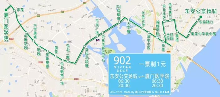 (十一)调整902路(东安公交场站—厦门医学院),进一步方便集美东安片区市民的交通出行。