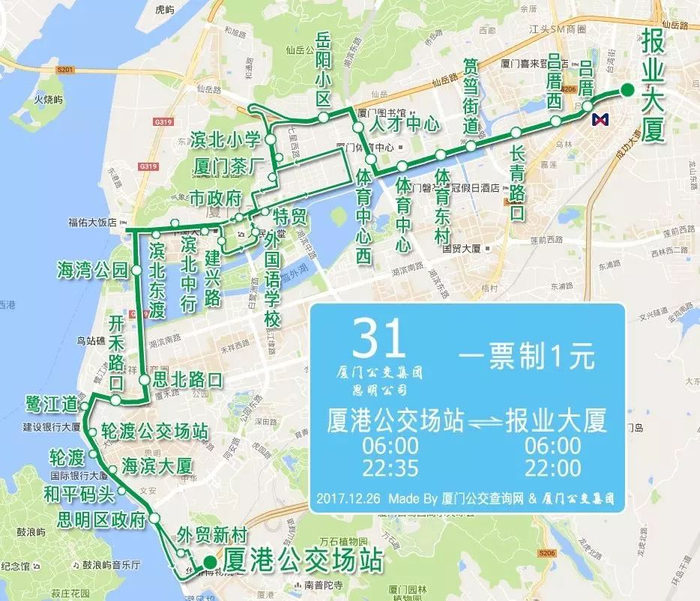 1、线路走向:厦港公交场站始发,行至吕岭路台湾街口,改为直行吕岭路至报业大厦。往返一致。