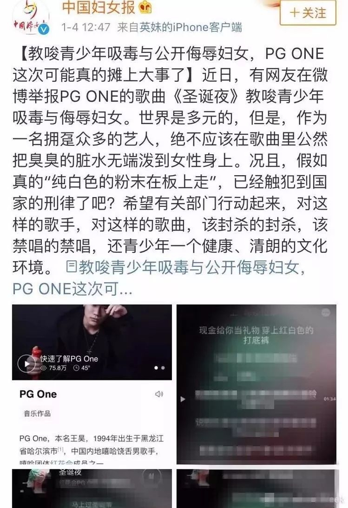 PG_ONE这首歌疑似教唆吸毒,虽道歉下架,可情况并不那么简单……