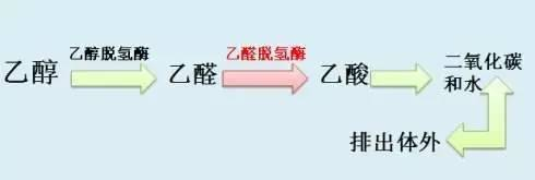 酒精在人体内的分解代谢主要靠两种酶:一种是乙醇脱氢酶,另一种是乙醛脱氢酶。乙醇脱氢酶能把乙醇分解为乙醛,而乙醛脱氢酶能把乙醛代谢为乙酸。