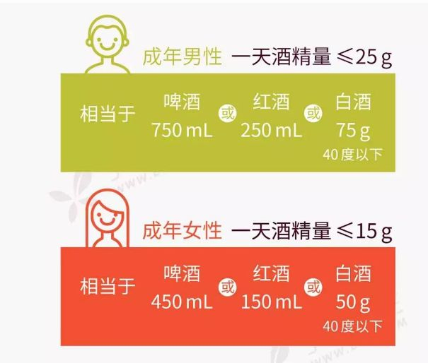 不同的酒里的酒精含量不同,换算一下,啤酒大约350毫升,葡萄酒大约150毫升,50度白酒是35毫升。