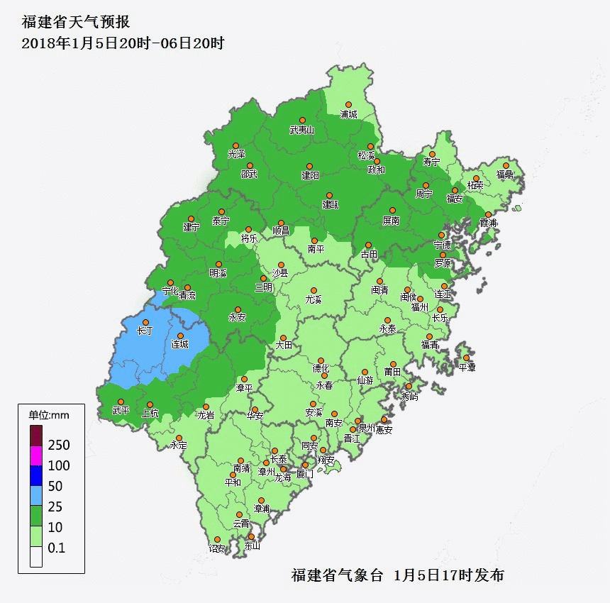 1月6~7日我省中南部地区有暴雨,龙岩、漳州局部大暴雨。