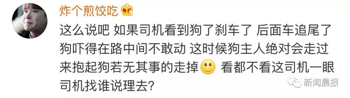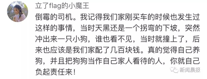 网友纷纷站队司机,“责任在狗主人,司机为什么要赔?”