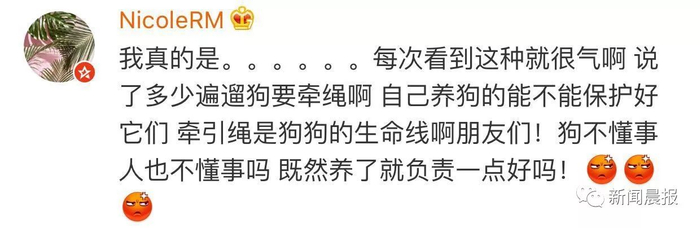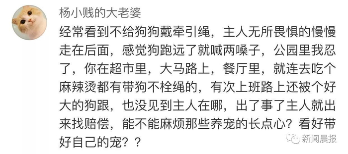 也有网友指责狗主人,既然养宠物,出门时候记得带着狗绳,为自己也为他人
