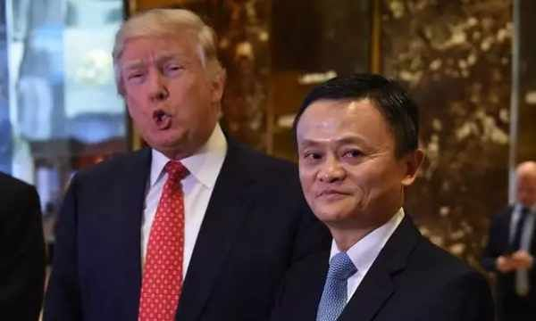 ▲资料图片:2017年1月,美国总统特朗普(左)会见阿里巴巴创始人马云。据悉,阿里巴巴将在未来5年为美国创造100万个就业岗位。(法新社)