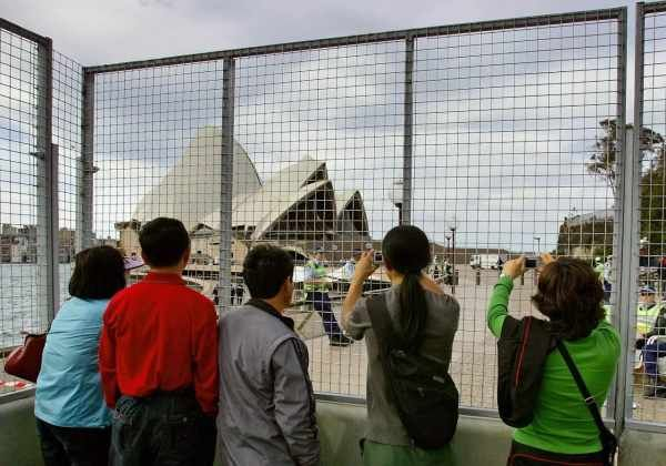 ▲资料图片:中国游客在悉尼歌剧院前拍照。(路透社)