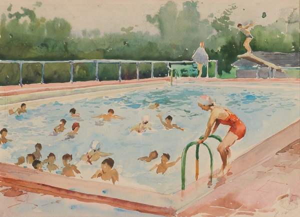 沈绍伦 《泳池》 水彩 纸本