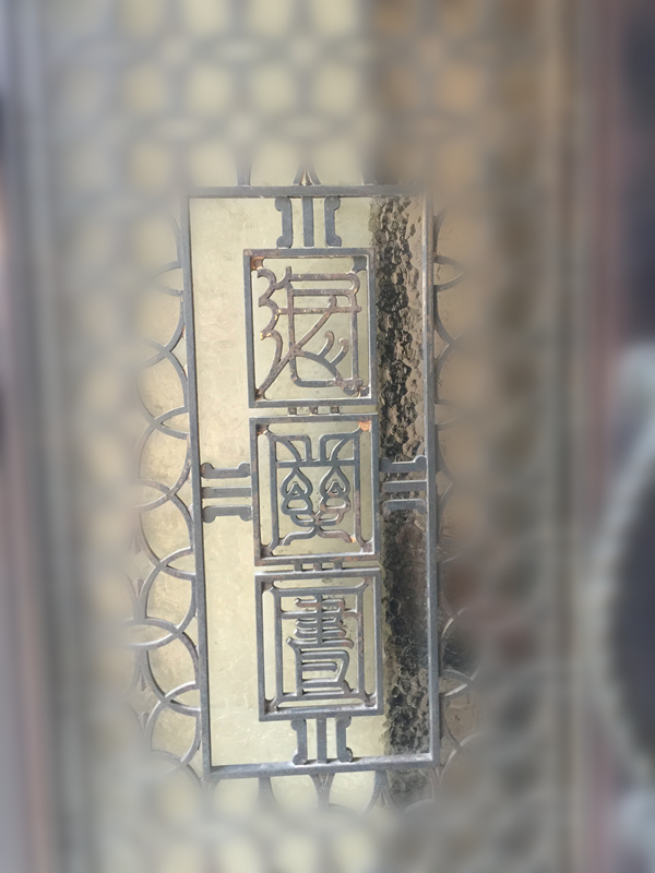 莽撞地推开海关楼大门,很容易错过一个重要细节,即大门中铜铸的“海关圕”。其中“圕”(音tuǎn)其实是1924年由图书馆学家杜定友发明的,用来代替“图书馆”三字。彼时,单写“圖書館”三字共需41画,杜定友提出的“圕”字仅需13画,大大提高效率。1929年1月,中华图书馆协通过杜定友提出的“圕”,其后,该会就“采访与流通”等事项致函各图书馆时,要求各地图书馆广泛使用“圕”字。因此,在1930年代兴建的图书馆中“圕”字使用十分普遍。静安区海关图书楼便是其中一例。