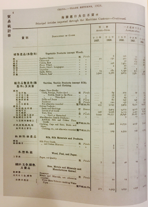 1928年海关进口大宗货物记录