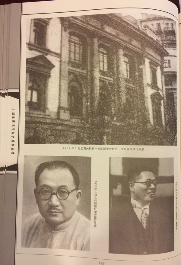 上图为中央银行外景,下图左为孔祥熙,右为宋子文