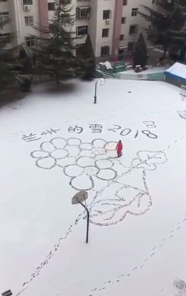 【兰州被白雪覆盖,高校美女雪中用脚作画!】好有才哦