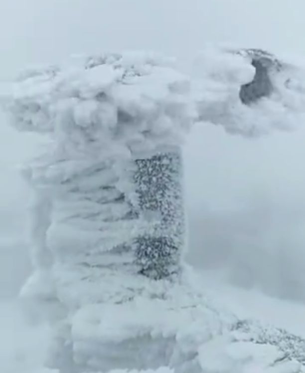 【风雪气象人:冰天雪地里清理测风塔】从1月2日开始,甘肃省华家岭气象站先后出现降雪和大雾天气,导致华家岭观测场风塔被雾凇紧紧包裹,这也是该站入冬以来的最大雾凇。为保证获取资料的准确性,值班人员在零下十几度的情况下爬上距地10米高的测风塔,清除掉厚厚的冰棱,确保设备正常运行。