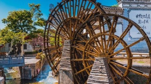 水车又称孔明车,是我国最古老的农业灌溉工具,是珍贵的历史文化遗产。而丽江古城的水车仅仅作为一个地标建筑和观赏作用。