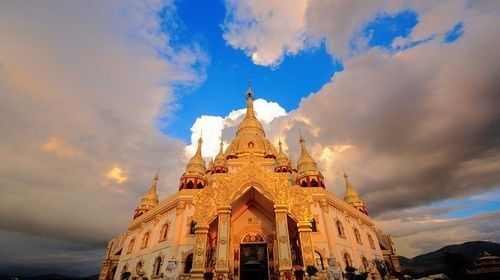 勐焕大金塔座落在云南省德宏州州府-芒市东南部孔雀湖畔的雷牙让山顶。青山绿水间的"勐焕大金塔"光彩夺目,雄伟壮观,是芒市标志性的建筑,也是生活在这里的傣族人民的圣地。勐焕大金塔也是中国第一金佛塔,亚洲第一空心佛塔。