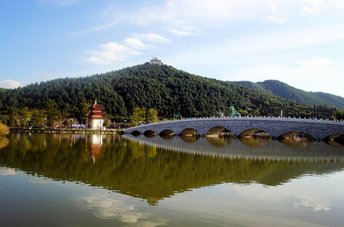 聂耳文化广场坐落于云南省玉溪市城区,由一湖、两线、一桥、四区组成,为纪念伟大人民音乐家国歌作曲人聂耳建立。