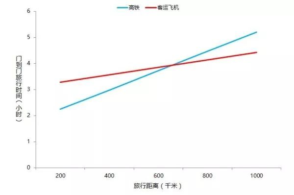 659km是高铁和航空运输市场的分界距离,当旅行距离小于659km时,高铁的门到门旅行时间小于飞机,当旅行距离大于659km时,飞机的速度优势随着旅行距离的增大而体现出来。而500km—900km则是高铁和民航竞争激烈的距离范围。