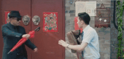 @骑兵2046:黑衣人给帅哥一把雨伞,帅哥给他撒了把狗粮,不错不错
