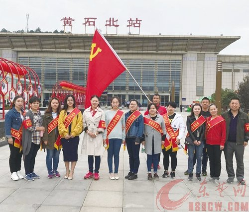 老师们在黄石北站开展志愿服务