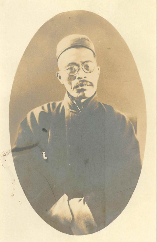 一个不很高大的身材,面孔也瘦小,牙齿有点獠在外面。常穿着当时通行的及法布袍子,罗缎短袖马褂。后面拖了一条短辫子。冬天他戴上一个瓜皮帽子,或者穿上羊皮袍子。但他没有比羊皮更高贵的皮衣。他的衣式不很时式,也不很古板,但很整洁。他的近视眼镜是新式的。他也会抽香烟。总之他的物质生活,是很随随便便,决没有一点遗老或者名流的气味。看去有点像旧式商店里的小伙计。