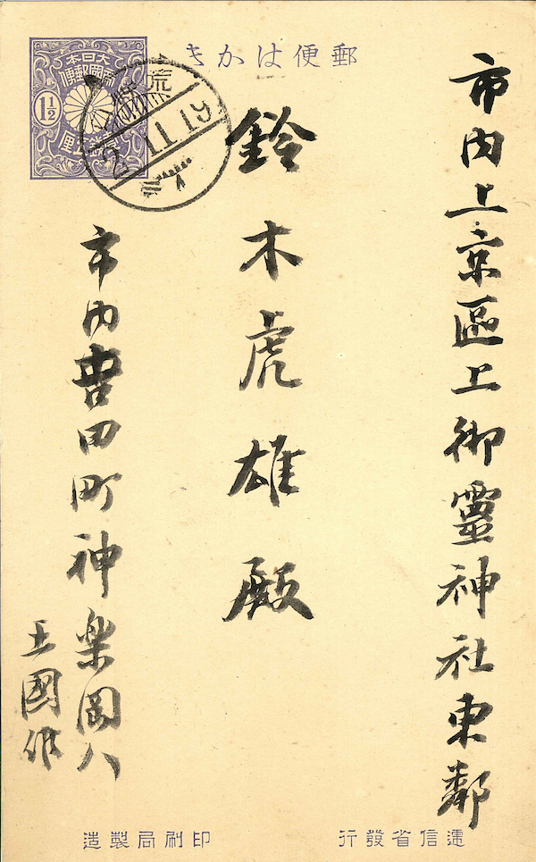 这邮柬承赠后廿多年,曾在澳门艺术博物馆举办“百年心画——晚清民国名人书迹展”中展出。小小邮柬,既说明王国维和铃木虎雄的居停,也见证了中日文化的交流。