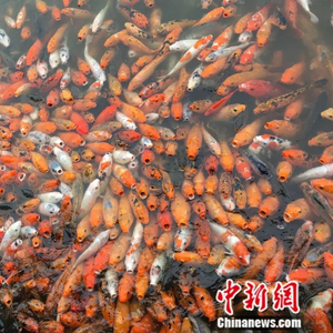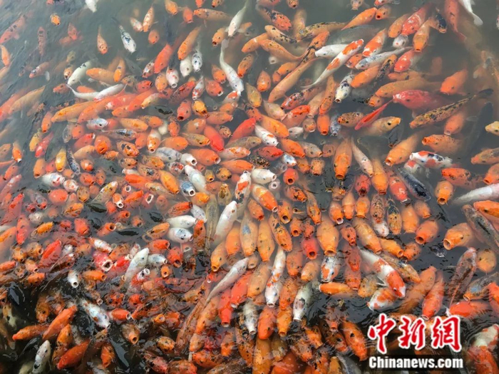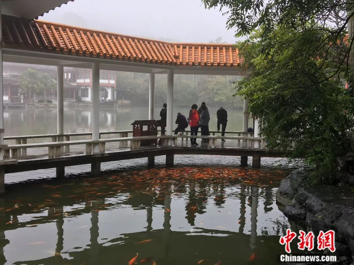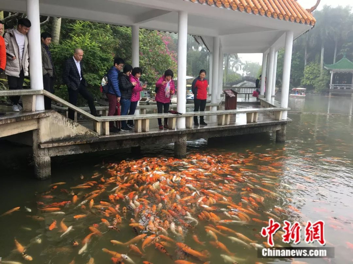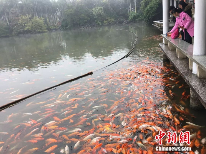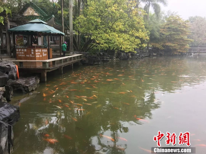 青秀山风景区天池喂鱼点鱼儿成群。陈秋霞 摄