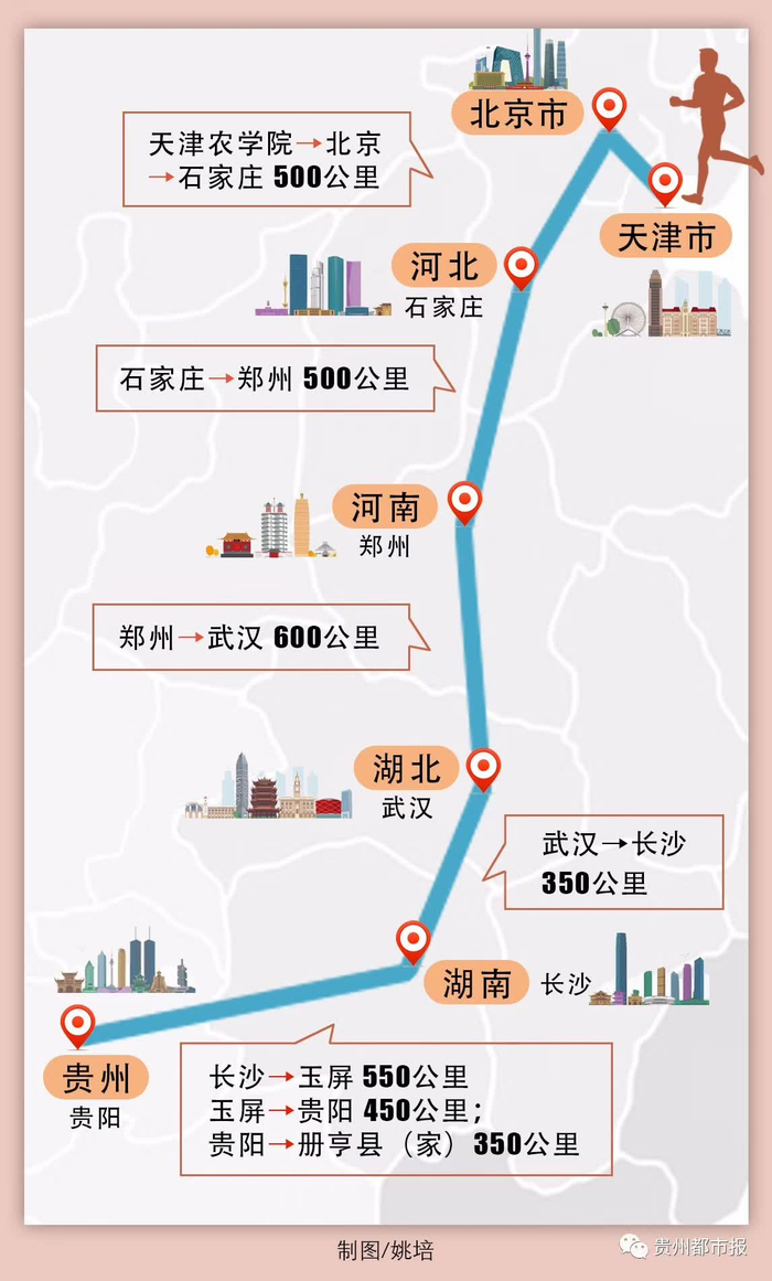3000公里的回家路,你会如何选择?坐飞机还是坐火车?如果有人说,要跑步回家,你信吗?还别说,真有这么一位小伙子,用脚步丈量母校到家乡的距离——他就是册亨县的苏登亮。2017年11月5日,他从母校天津农学院出发,踏上了跨越7省市、3000多公里的回家路。