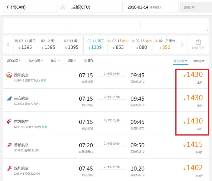 成都等热门方向基本全价