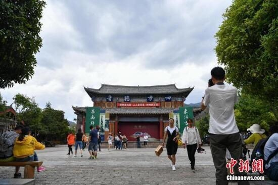 资料图:游客在丽江束河古镇内游览。 中新社记者 任东 摄