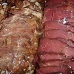 如果颜色是粉红色的,而且这种粉红色从里到外都一样,那么一定是添加了亚硝酸盐发色。