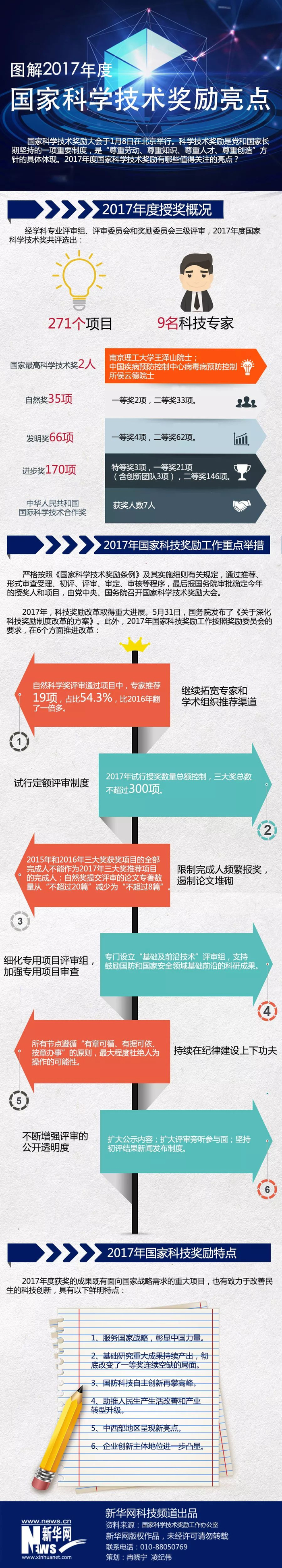 1月8日上午,2017年度国家科学技术奖在北京揭晓,共评选出271个项目和9名科技专家。