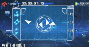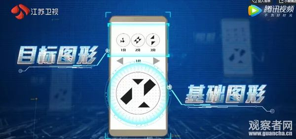 选手需要将手机上呈现的若干基础图形,组成对应3个分值的目标图形,目标图形根据难度分别为1分、2分、3分。