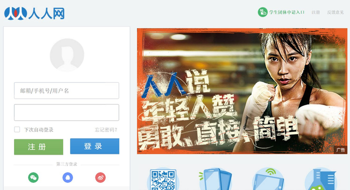 ▲人人网登录界面