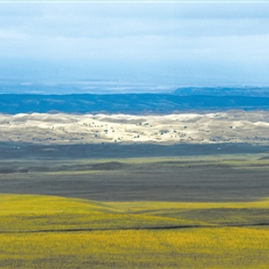 这是位于三江源保护区的贵南县黄沙头防沙固沙点(2015年9月9日摄)。