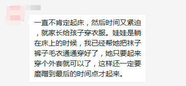 但是这背后,都是家长拼命努力的结果。比如有的家长会和孩子比赛穿衣服,有的家长不得已拿走孩子最爱的玩具威逼利诱,还有家长说:“每隔五分钟我就放一次音乐闹铃,再组合大人人声唤醒!以防频率单一造成麻痹!”