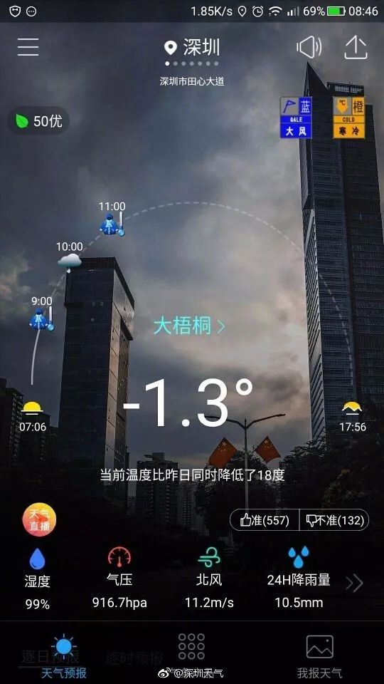 鹏城昨日出现了阵雨,