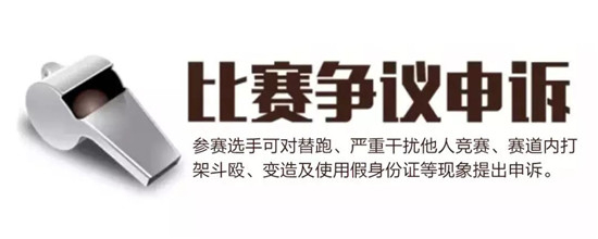 2、赛后争议:参赛选手可对替跑、严重干扰他人竞赛、赛道内打架斗殴、变造及使用假身份证等现象提出申诉。