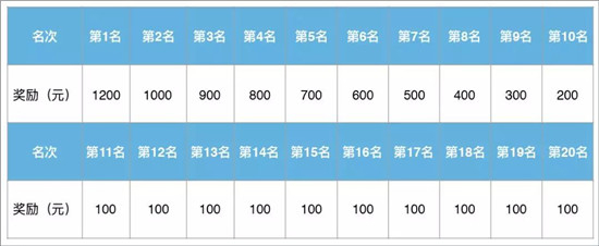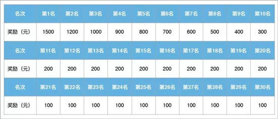 男子组奖励前30名,女子组奖励前20名,总奖金18500元,奖金分配方案如下: