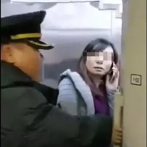 列车不能关门无法开车,一名乘客在旁提醒该女子:“你这是违法的,你在干什么啊?”