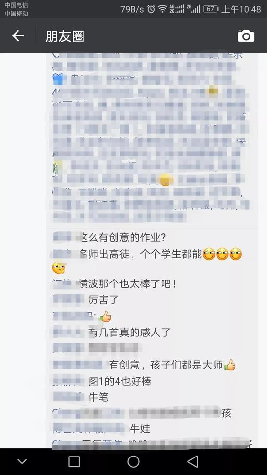 不光老师淡定,当程锋将优秀作品发到朋友圈后,家长们还集体点赞,尤其是写出优秀作品的那几名学生家长,更是惊喜万分,主动转发。