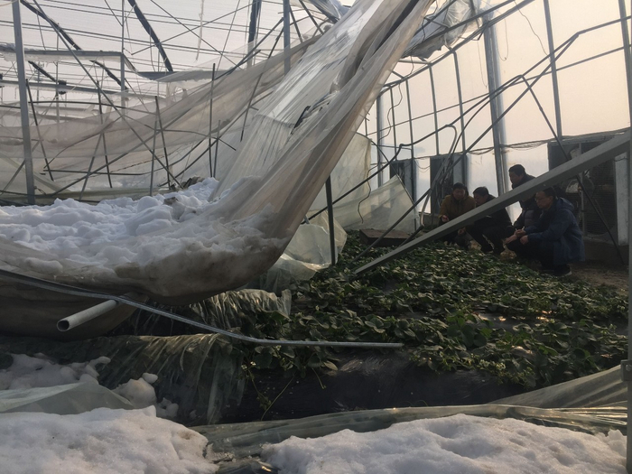 大雪导致采摘园里的3个草莓棚压垮