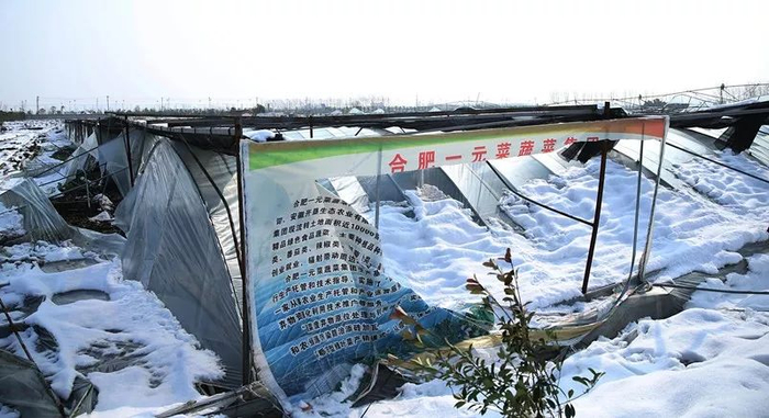 这次降雪过程中,合肥积雪深度达到27厘米,这是近十年来的最大值。暴雪给合肥农业生产造成了严重损失,多处蔬菜大棚、草莓大棚坍塌。