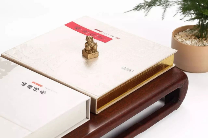 ▲2018戊戌年邮票纪念礼盒《福旺传家》,内含邮票2版,共12张,铜制印章1枚