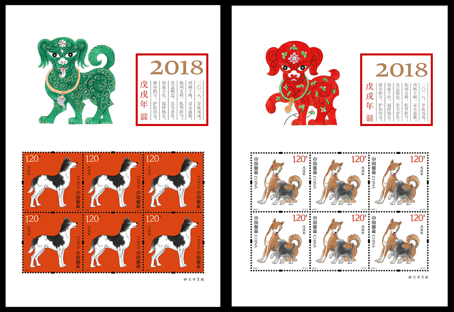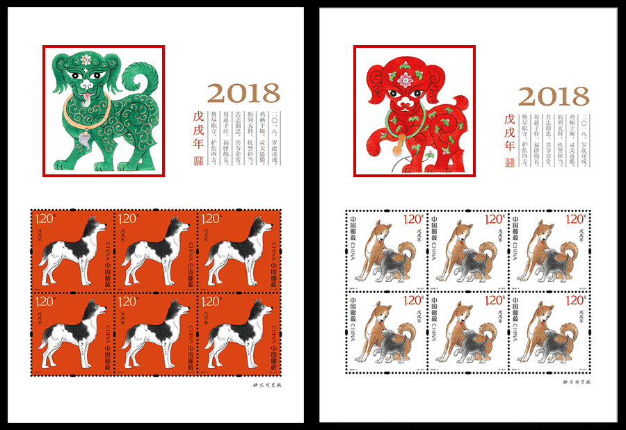 这套2018戊戌年第四轮生肖狗邮票