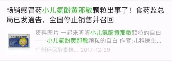 “畅销感冒药小儿氨酚黄那敏颗粒出事了,不能再吃了。”“以后感冒了只能吃中药了,西药小儿氨酚黄那敏出事了”……最近一段时间,网络上都在盛传儿童感冒药“小儿氨酚黄那敏颗粒”出事儿的消息,加上最近正值流感高发期,让不少家长感到惶恐不安。