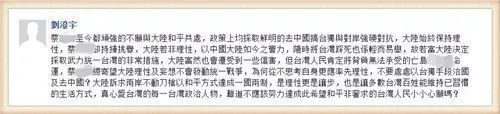 有网友批评蔡当局只呼吁“大陆理性”,可自己一直搞“台独”。大陆给出的“一国两制”是最好的良方,真心爱台湾的每一个政治人物都应循此达成台湾民众希望和平的小小心愿。