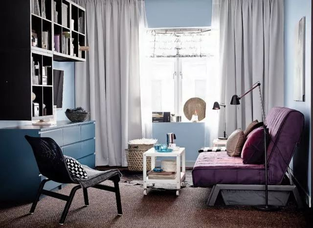还要看:斜放沙发,在与墙角形成的三角区里放一盏方便阅读的落地灯。小圆边桌不占地儿,却很方便你放一些书和水杯。一个简约的婴儿床,是卧室很好的装饰,多年以后,你看着那个跟你发脾气的孩子,会很想念这些喝着茶看 ta 在婴儿床里熟睡的画面。