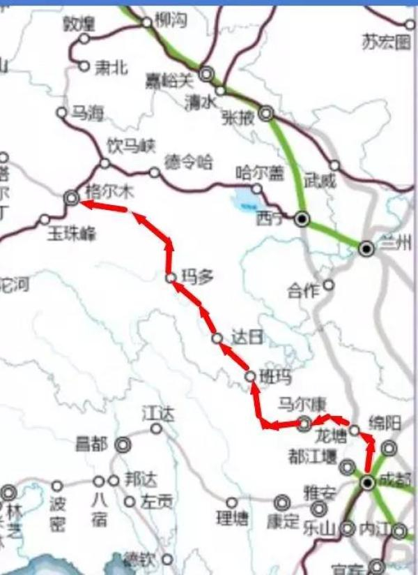 成格铁路,连接成都和格尔木,约1270公里,是川青铁路的重要部分。是《国家中长期铁路网规划》中规划研究铁路之一。未来与甘藏铁路(及大格铁路)交叉于青海省果洛州达日县,将大大优化优化中国西北部区域里广大中部地带的铁路格局。