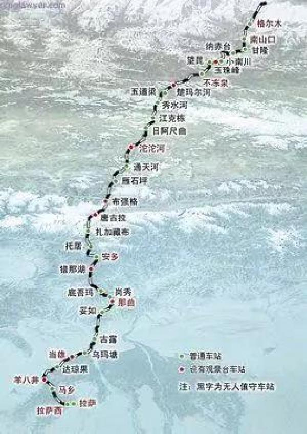 目前已建成完工的青藏铁路,格尔木为重要大站,通过青藏铁路,格尔木可直达西藏首府拉萨。