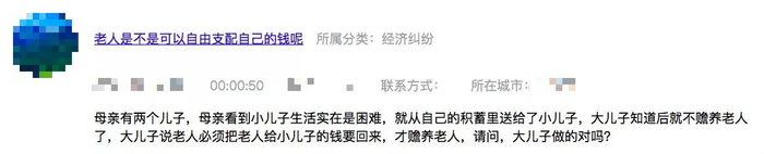 你好!老人有权力自由支配自己的钱,这与儿女的赡养义务是不冲突的,大儿子的做法违背了法定的赡养义务,是不合法的。